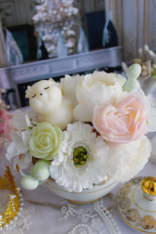 Bouquet théière "La valse romantique "- Parfum fleur de coton