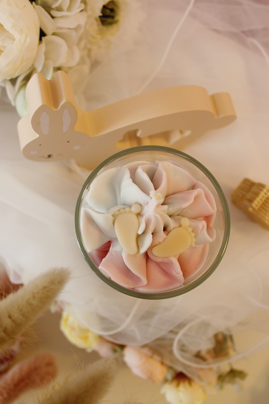 Bougie gourmande "Fille ou garçon?" - parfum poudre de riz