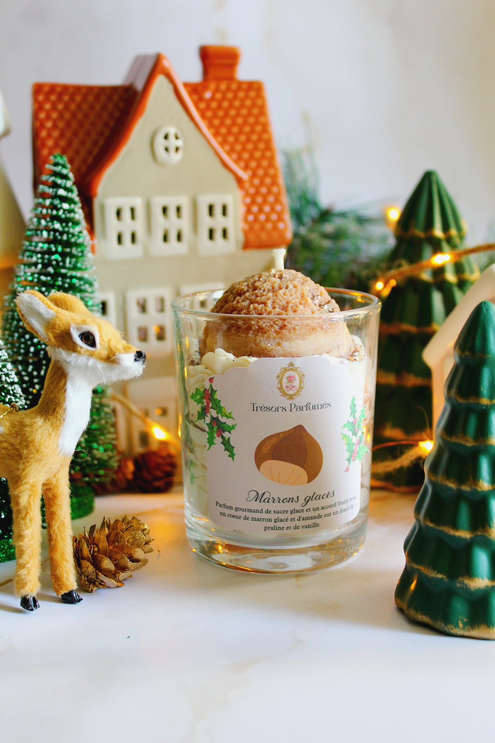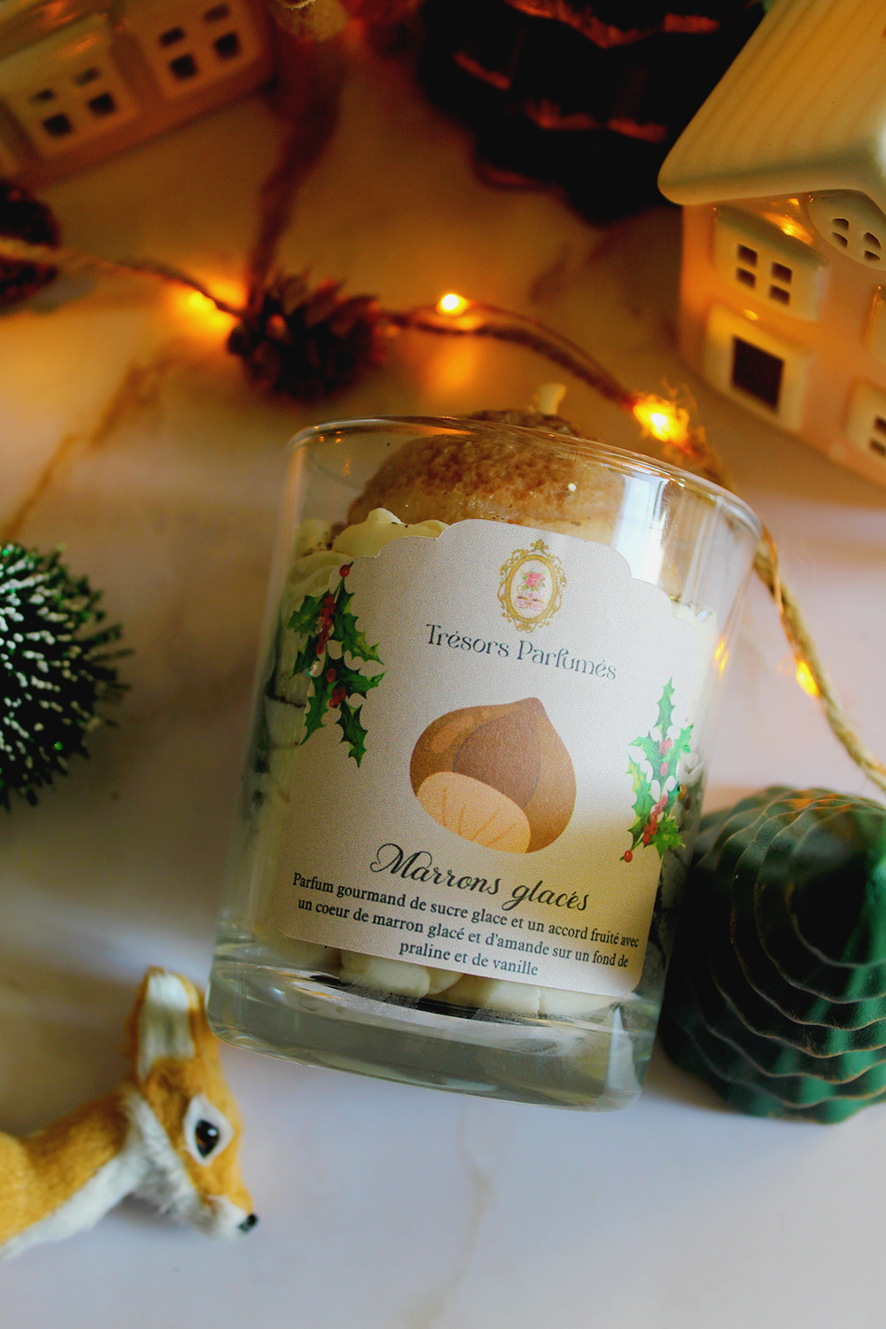 Laissez-vous transporter par la douceur réconfortante de notre nouvelle bougie Marrons Glacés, une création parfumée qui capture toute la magie des fêtes.