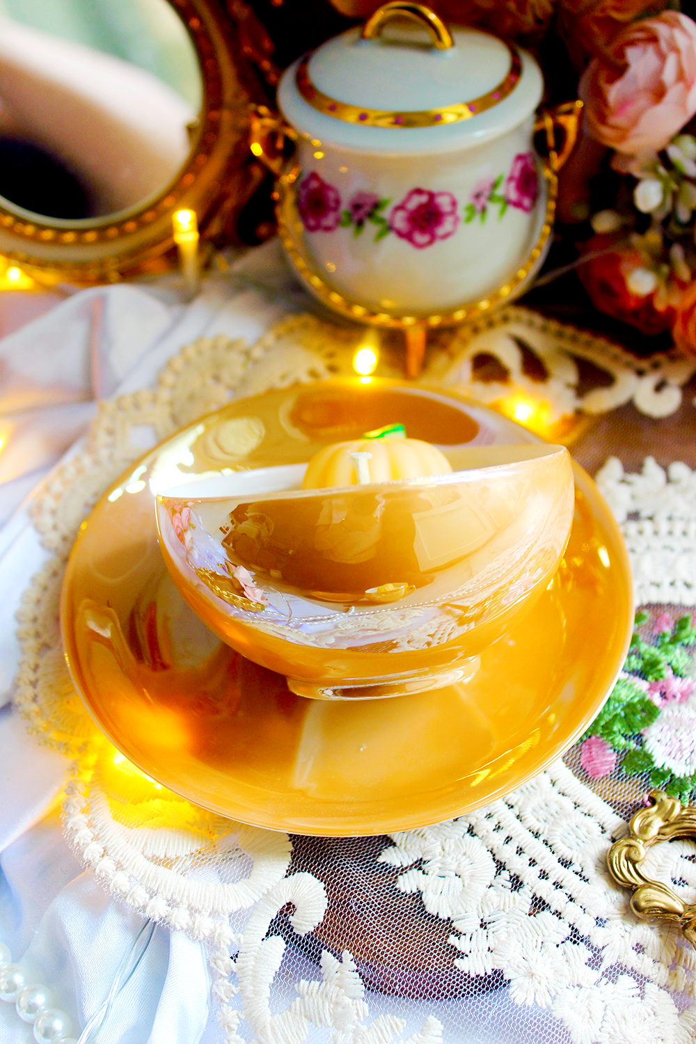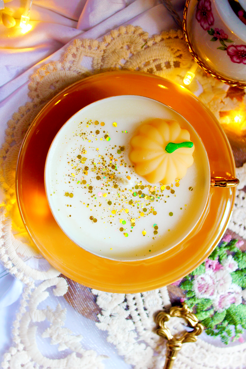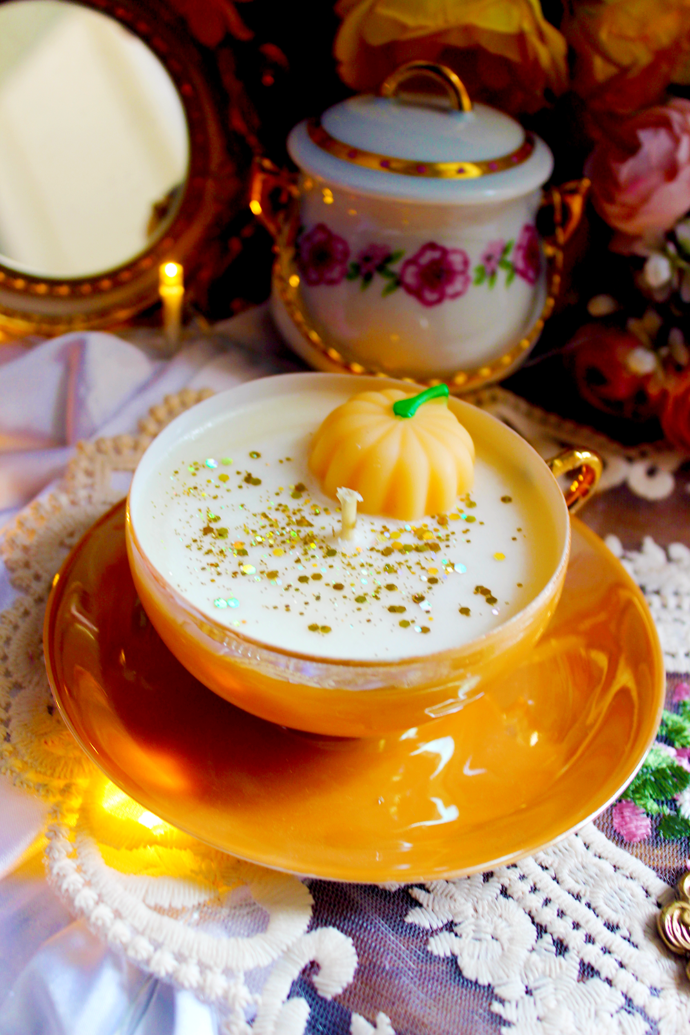 Son design raffiné, orné d’une adorable petite citrouille en cire et de paillettes dorées scintillantes (ou pas), évoque la chaleur des soirées cocooning et l’éclat des feuilles d’octobre.
